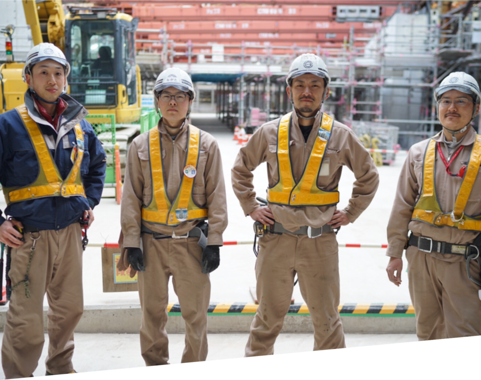 現場監督の仕事は、主に品質や納期を管理することです。特に、安全面には最大限の対策を講じることが必要不可欠です。メディアに取り上げられるような社会に影響を与える大規模な工事に携わることもあるため、達成感や、やりがいを感じるだけでなく、個人の成長にもつながります。また、白岩工業の現場は、「ダム工事」「躯体工事」「シールド工事」「鉄道工事」など多岐に渡ります。現場では社員だけでなく取引先や協力会社と協力しながら工事を進めていきます。