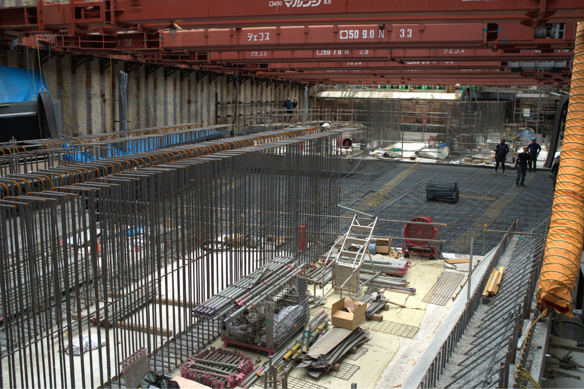 • 鉄筋工事:コンクリートの強度を高めるための骨組みとなる、鉄筋を組み立てる工事